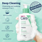 Refresh your skin with CeraVe Foaming Facial Cleanser, a gentle makeup remover suitable for oily and sensitive skin types. The luxurious gel transforms into a weightless foam which sweeps away dirt, excess oil and impurities whilst maintaining the strength of the natural barrier function.
