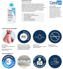 An ideal lotion for rough skin contains salicylic acid and lactic acid for gentle exfoliation, hydrating hyaluronic acid, and barrier-strengthening ceramides to help prevent further moisture loss. We recommend a hypoallergenic, non-irritating lightweight moisturizer like CeraVe Lotion for rough and bumpy skin to help smooth skin texture without unwanted side effects.CeraVe SA Lotion for Rough & Bumpy Skin is formulated to effectively smooth and soothe dry skin. With a lightweight, non-greasy formula, this lotion for rough skin is designed to improve skin texture with exfoliating salicylic acid and lactic acid as it hydrates with hyaluronic acid and restores the skin’s natural barrier with three essential ceramides. This potent lotion for bumpy skin also features patented MVE Delivery Technology for continual release of exfoliating and hydrating ingredients, and the non-irritating salicylic acid lotion formula is gentle on the skin.